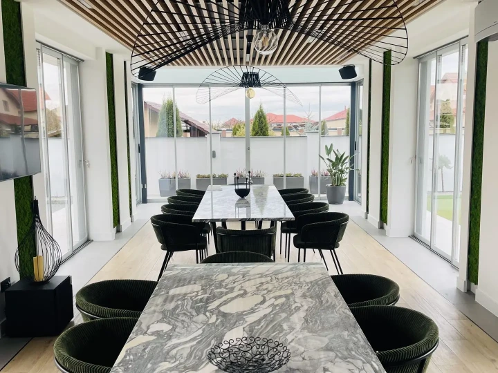 Soluții pentru compartimentarea spațiilor interioare, care permit delimitarea funcțională fără pierderea luminii sau a continuității vizuale.