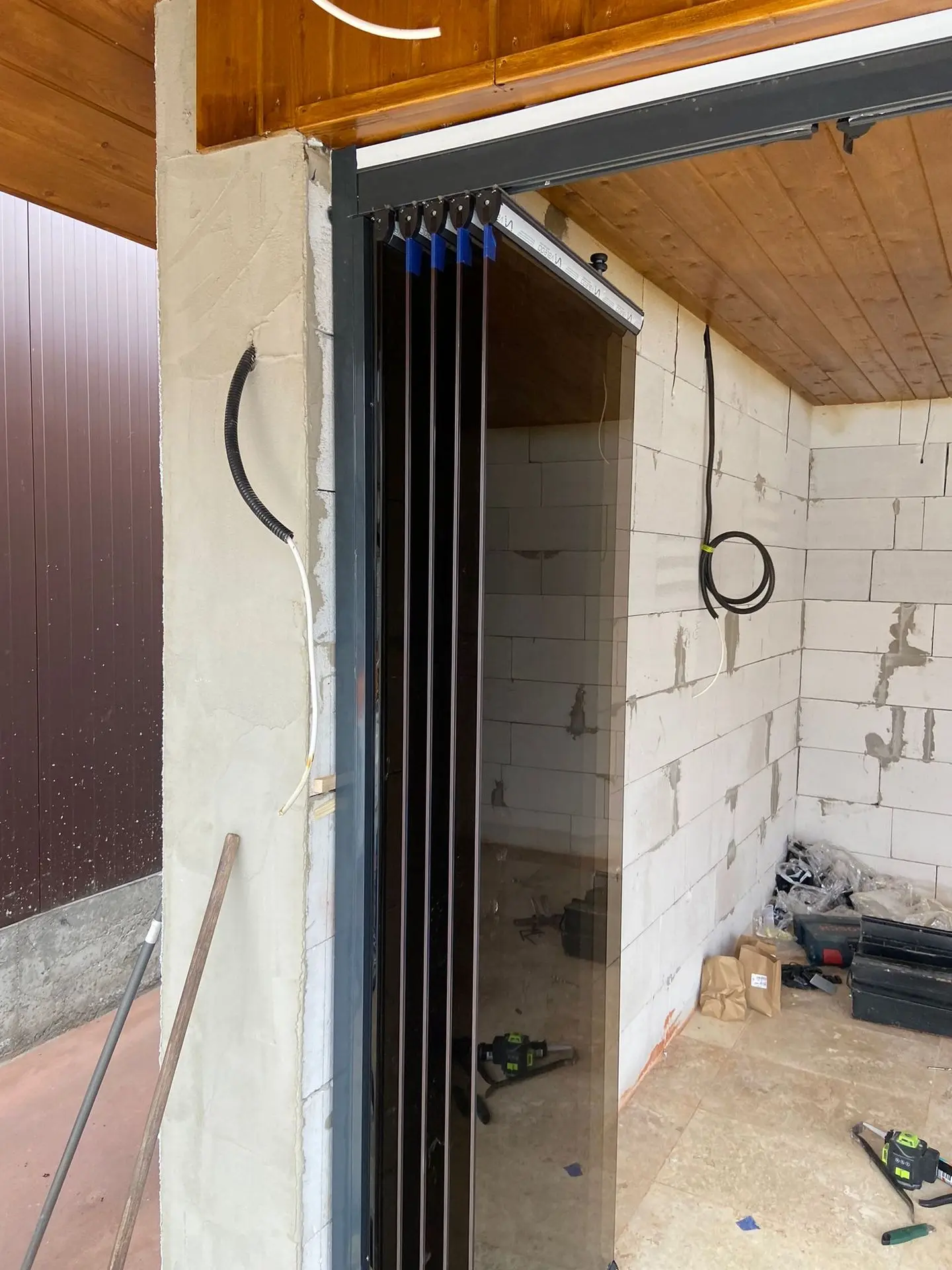 Montajul a implicat două provocări tehnice: bara superioară din oțel, tip I, avea o ușoară curbură, iar podeaua din partea dreaptă prezenta o diferență de nivel de 30 mm. Echipa Litglass SRL a compensat aceste variații prin ajustări precise, mascând diferențele și stabilizând sistemul astfel încât panourile Valedo BKS-T să gliseze corect și uniform, fără a compromite estetica proiectului.