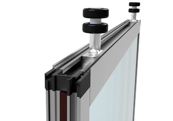 Fiecare rolă conține câte un rulment dublu cu înveliș de teflon. Astfel, toate panourile de sticlă sunt deschise și închise confortabil, cu zgomot minim și fără senzație de frecare.