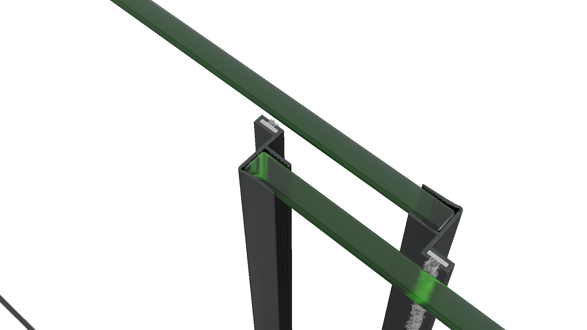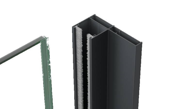 - Caracteristică: profil vertical și perii de etanșare între panouri.